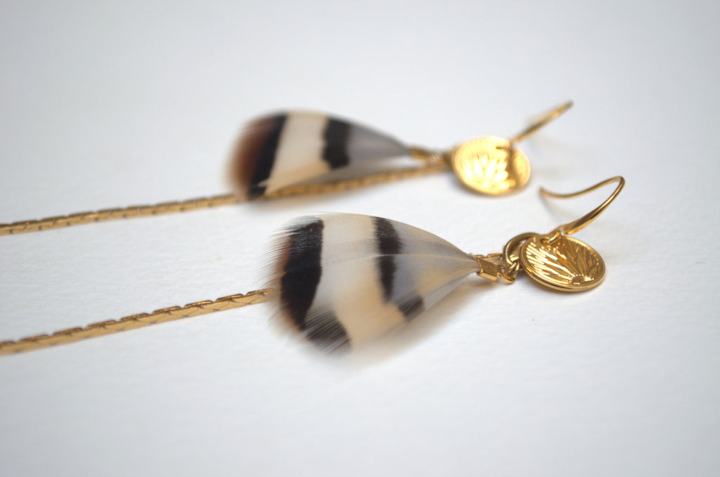 On adore les couleurs délicates naturelles de la plume de perdrix. Saviez-vous qu'il n'y en a qu'une dizaine, juste sous les ailes ?